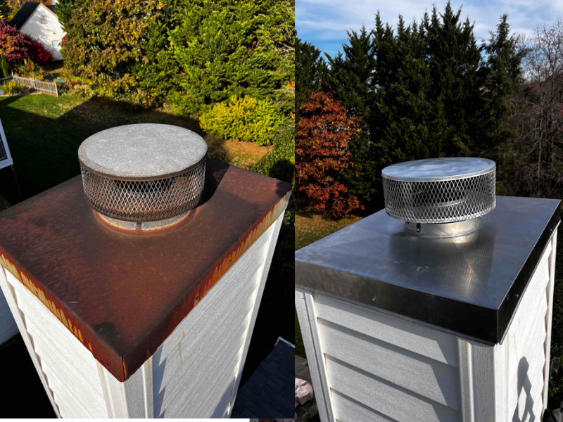Damaged, rusted, or missing chimney cap or chase top allows water, debris, and animals inside, leading to blockages and moisture issues—prevent this by installing or replacing the cap.